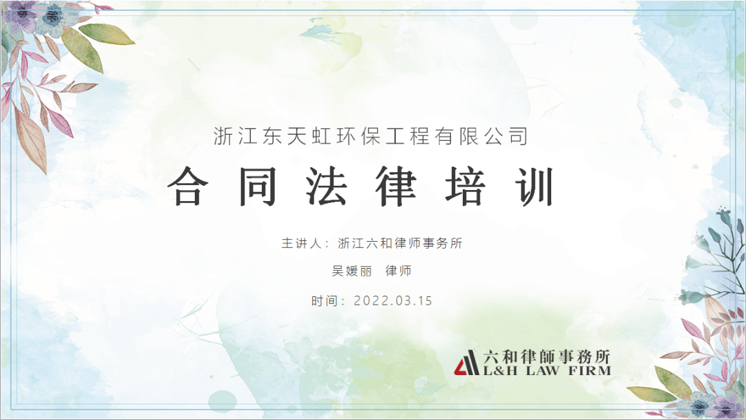 六和律師事務所成立于1998年11月,是以公司和投融資業務為特色的大型綜合性律師事務所,系全國優秀律師事務所,浙江省服務業重點企業。六和律師事務所是公司的常年法律顧問,已經為東天虹服務很多年。六和律所根據東天虹環保的發展需求提供專業、專項的法律服務,幫助東天虹環保搭建完整的法律風控體系,在降低自身對外開展業務風險的同時,將更專業地為客戶與合作伙伴提供完整的定制化綜合解決方案,為客戶與合作伙伴創造價值。
