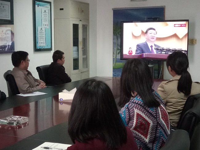 十月十八日,黨的十九大在北京開幕啦!東天虹組織了部分員工觀看了習(xí)總書記的報告。